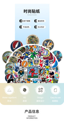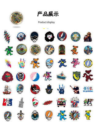 50–100 pieces of Grateful Dead DIY graffiti stickers—waterproof for suitcases, notebooks, phone cases, and scooters