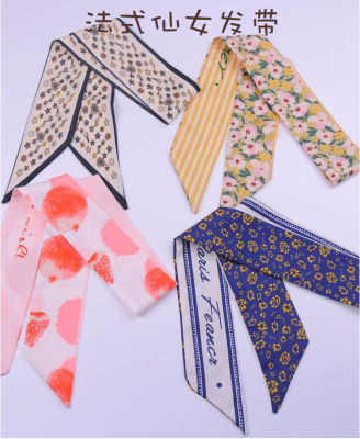 New French elegant retro silk scarf headband for women to tie their hair. Internet celebrity ins super fairy bow tie ribbon.