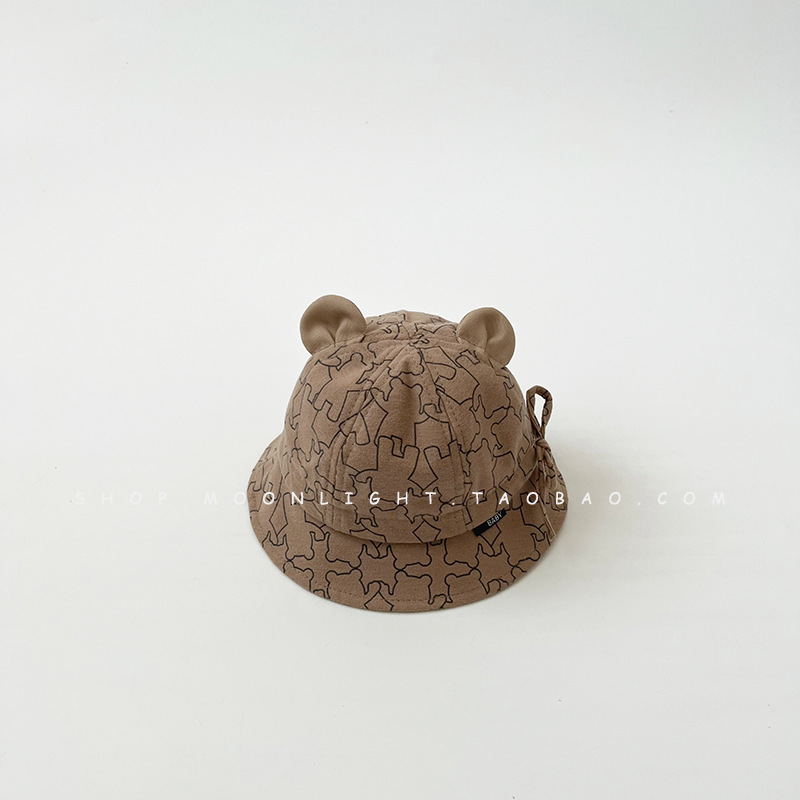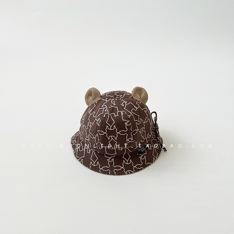 46-48cm(Recommended for 1-3 years old)-One size fits all-Dark coffee Fully printed bear fisherman hat