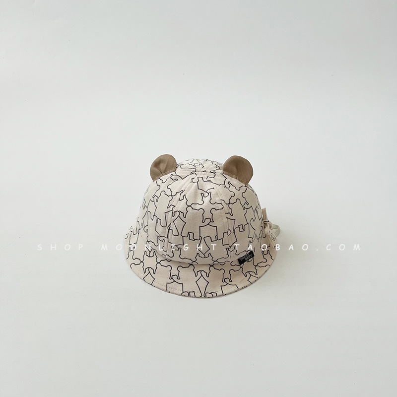 Printed Bear Children's Fisherman Hat Spring and Autumn Season Baby Toddler Bucket Hat for Boys and Girls Baby Sun Protection Hat Adjustable