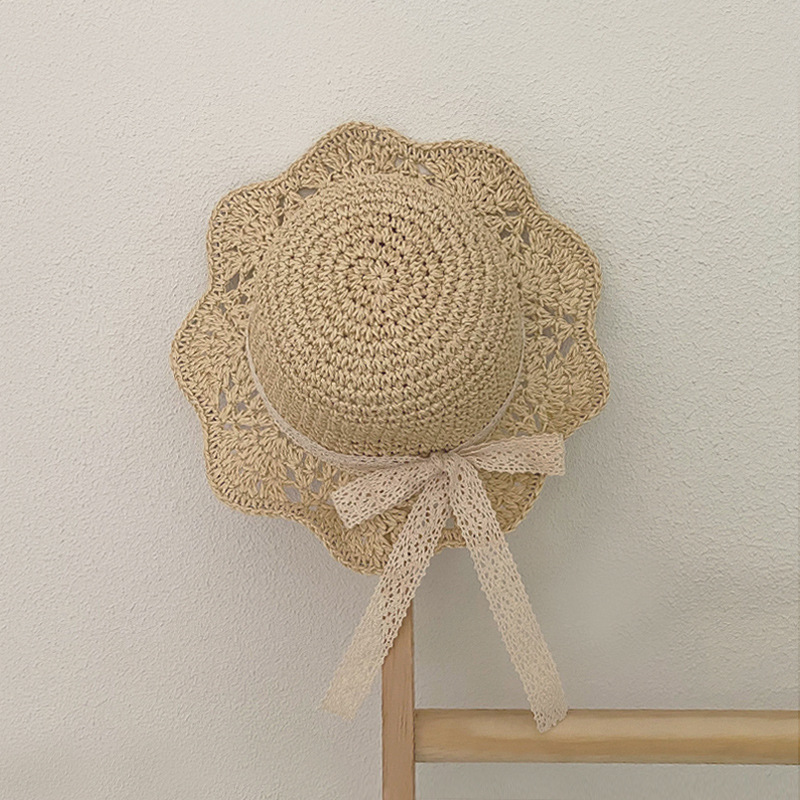 Children's summer sun hat, UV protection, lace butterfly knot hat, baby Korean version princess, foldable beach hat for girls