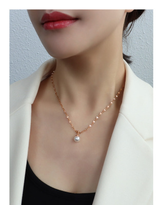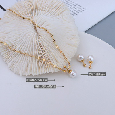 French niche design choker imitation pearl earrings clavicle chain necklace titanium steel 18k gold jewelry set