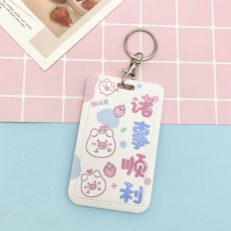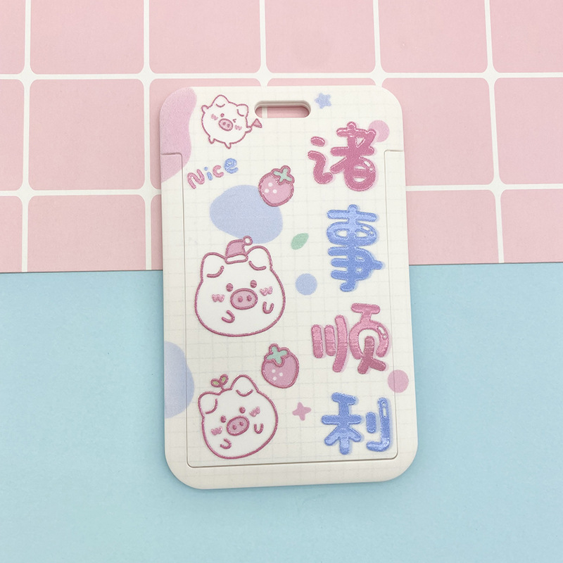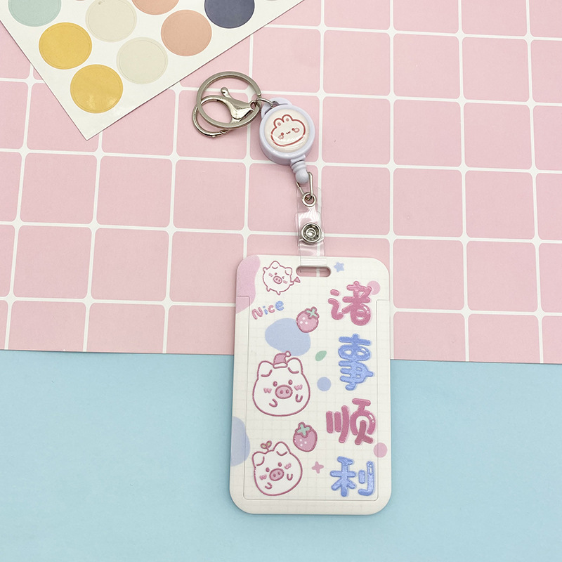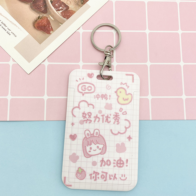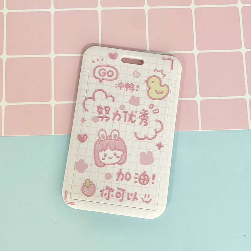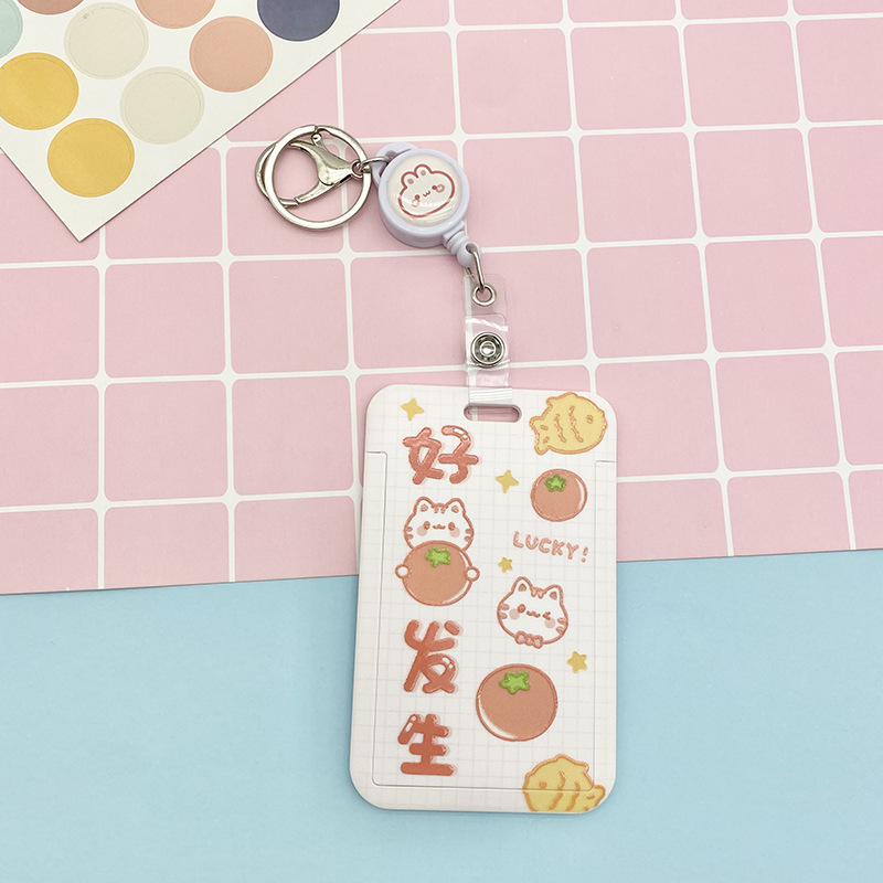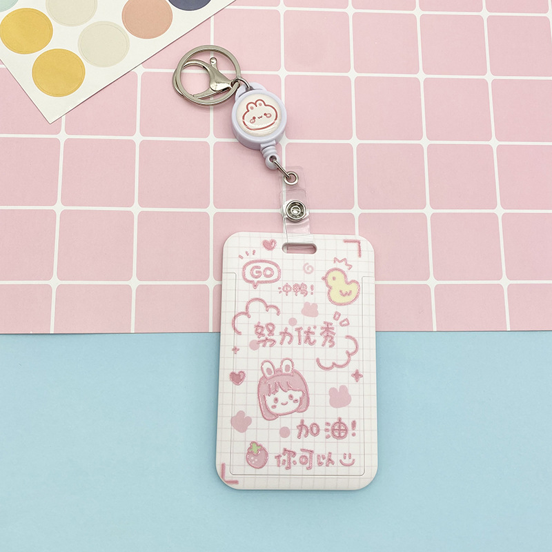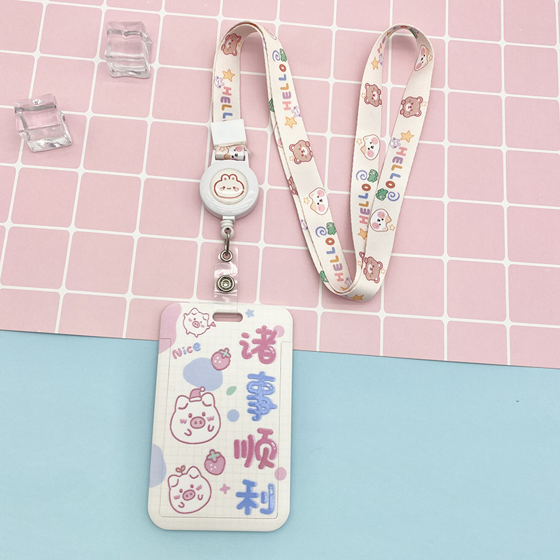 Cartoon text student card set, meal card, bus transfer card, kindergarten protective cover, chest card bag, retractable lanyard