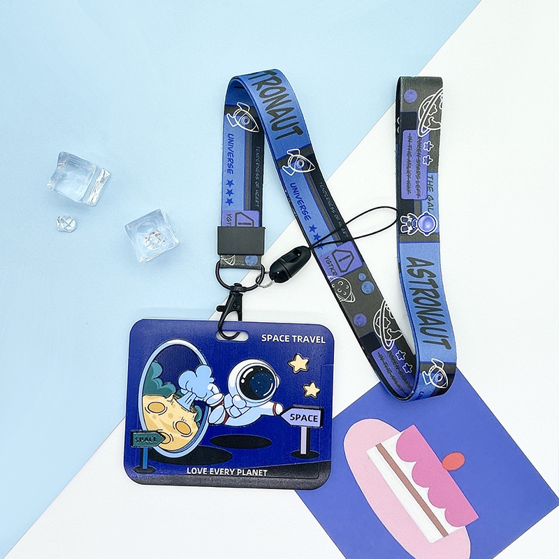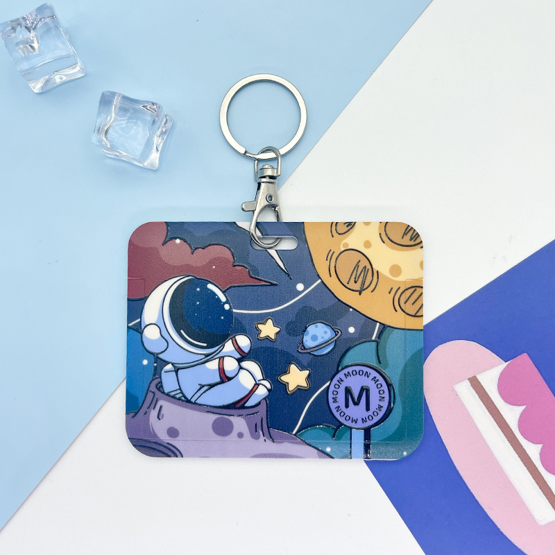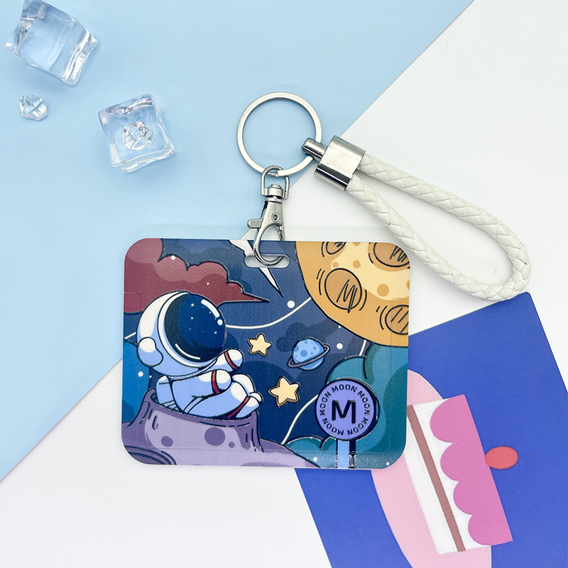 Horizontal slide cute astronaut campus card library card student access control IC card protective cover bus subway card bag
