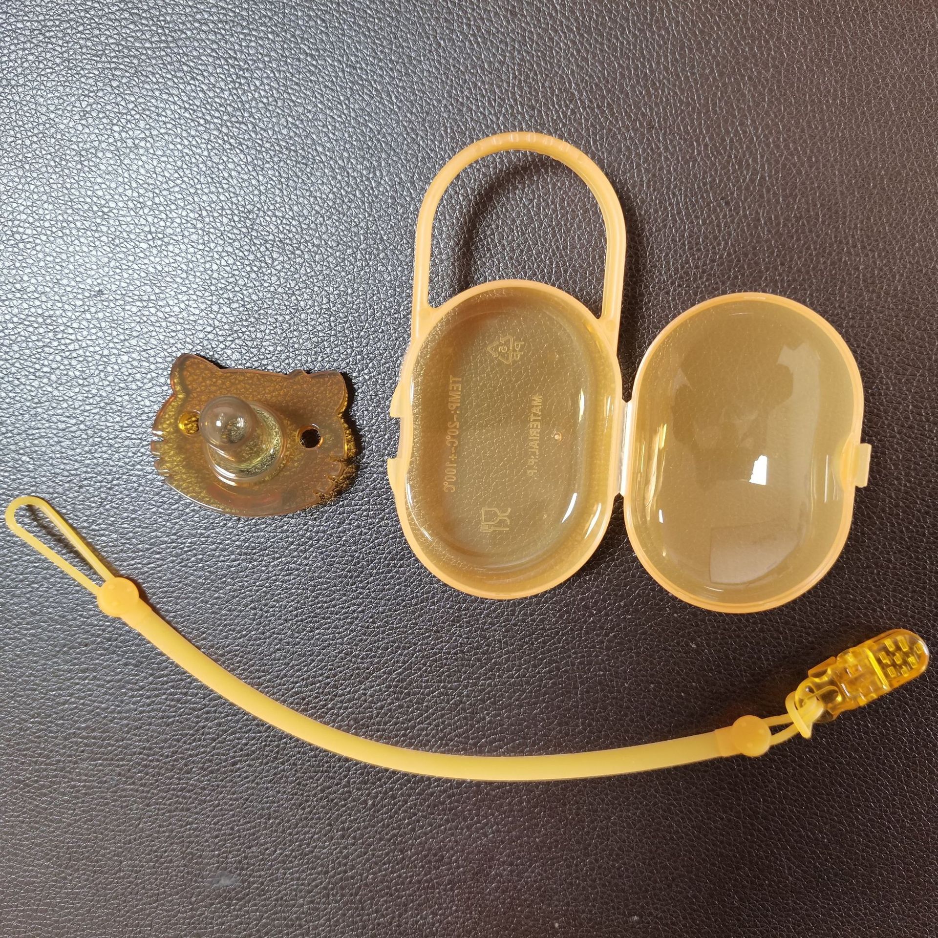 Transparent kitten style round-head pacifier + telescopic chain + box