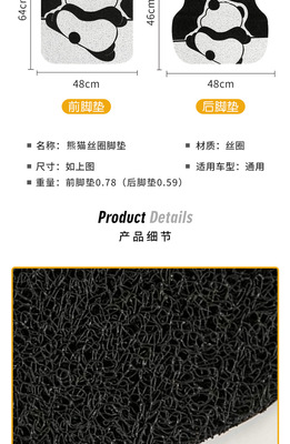 Cartoon Panda Car Floor Mat Hook Universal Single Main Driver Anti-Dirt Decorative Car Mat Rear Foot Mat