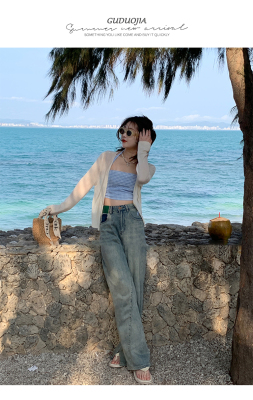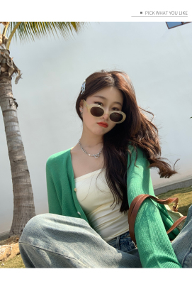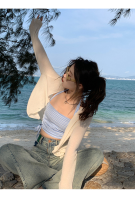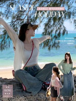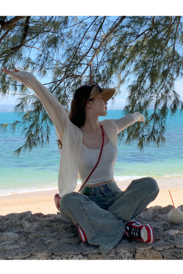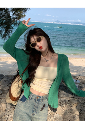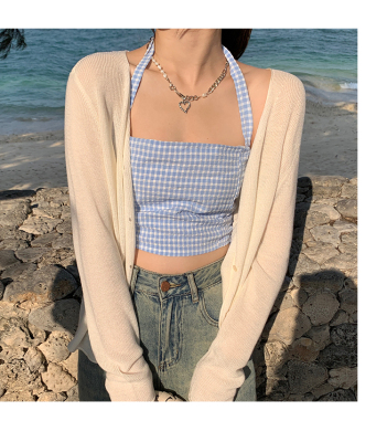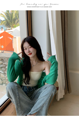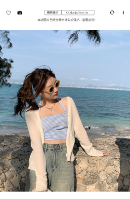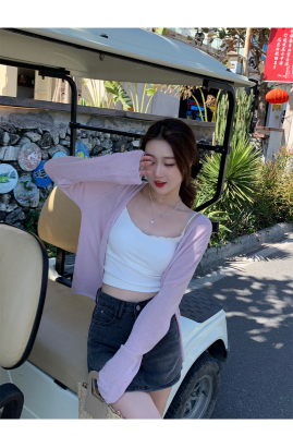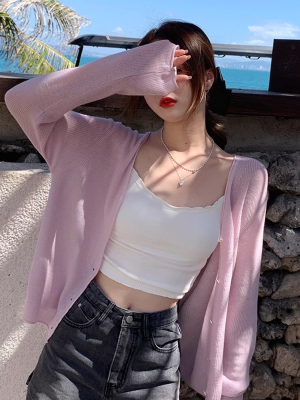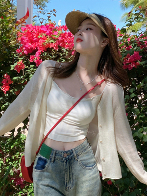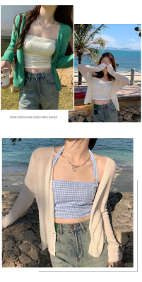 Ice silk knitted sun protection clothing for women in summer, thin French style shawl with suspender skirt and waistcoat air-conditioning cardigan