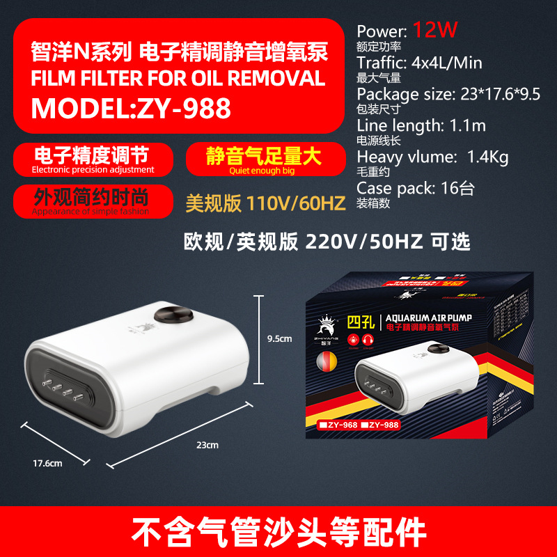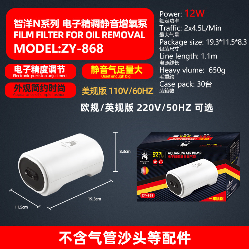 Small oxygen pump for fish tank, silent air pump for fish farming, British standard three-plug pump, European and American standard 110V oxygen pump for aquarium