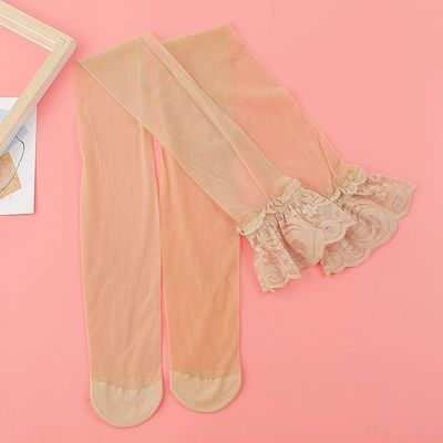 Lace edge socks, Japanese style white silk stockings, lace edge knee-high stockings, thin cute women's Lolita thigh socks