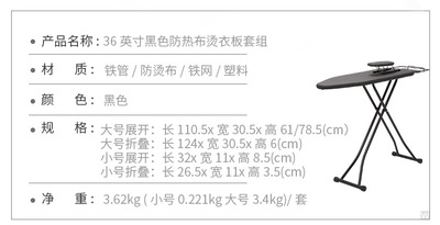 Specifications: 36 inches black + sleeve ironing suit [board length 91cm]
