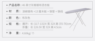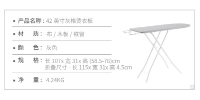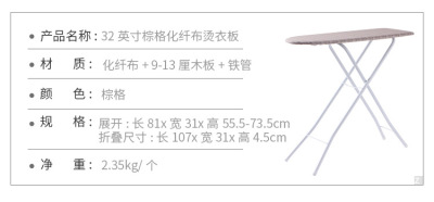 Specifications: 42 inches brown + sleeve ironing suit [board length 108cm]