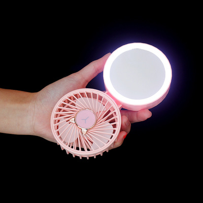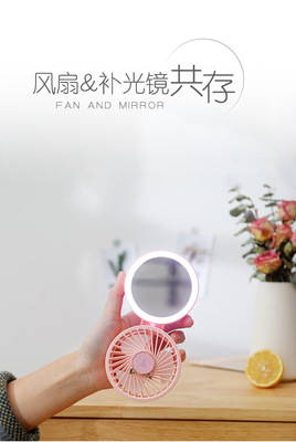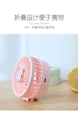 USB Rechargeable Desk Fan with Clip-on LED Light, Portable Mini Fan with Hanging Strap, Foldable Makeup Mirror Fan
