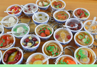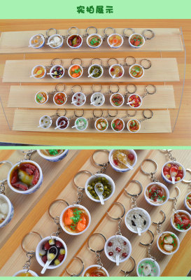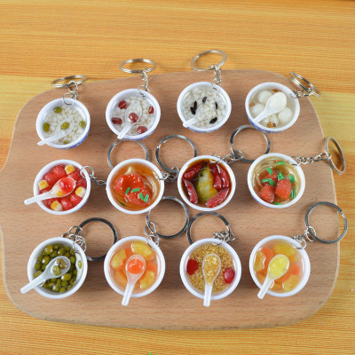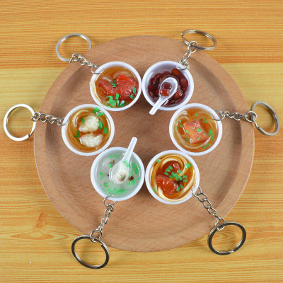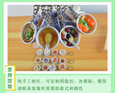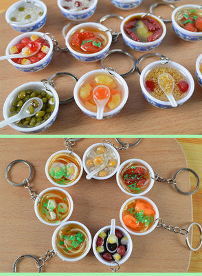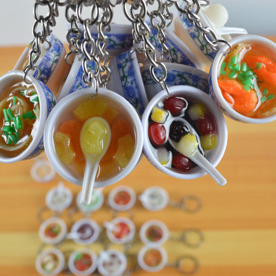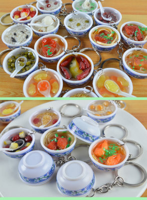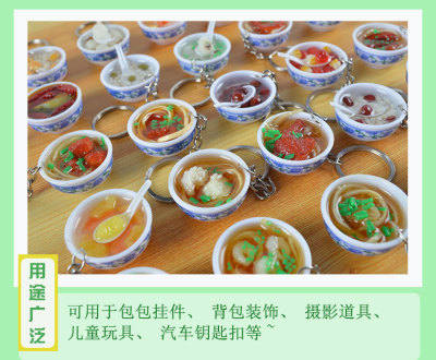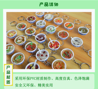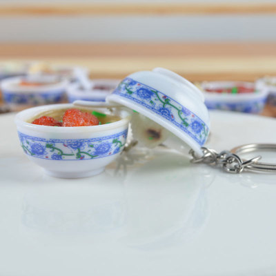 PVC simulated food blue and white porcelain keychain, simulated food toy small bowl backpack hook decoration toy, strong factory