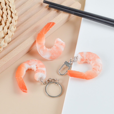 Simulation seafood shrimp keychain creative personalized bag accessory funny quirky food play model ornament key