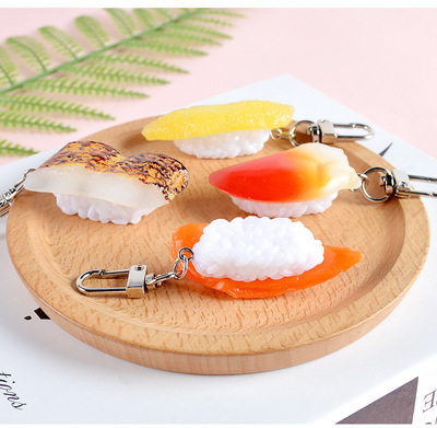 New PVC Food Sushi Keychain Model, Japanese Sashimi Rice Ball Food Toy Ornament