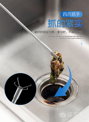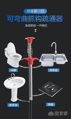 下水道疏通神器 帶抓鈎鋼絲管道清理器四爪彎曲垃圾毛髮疏通器