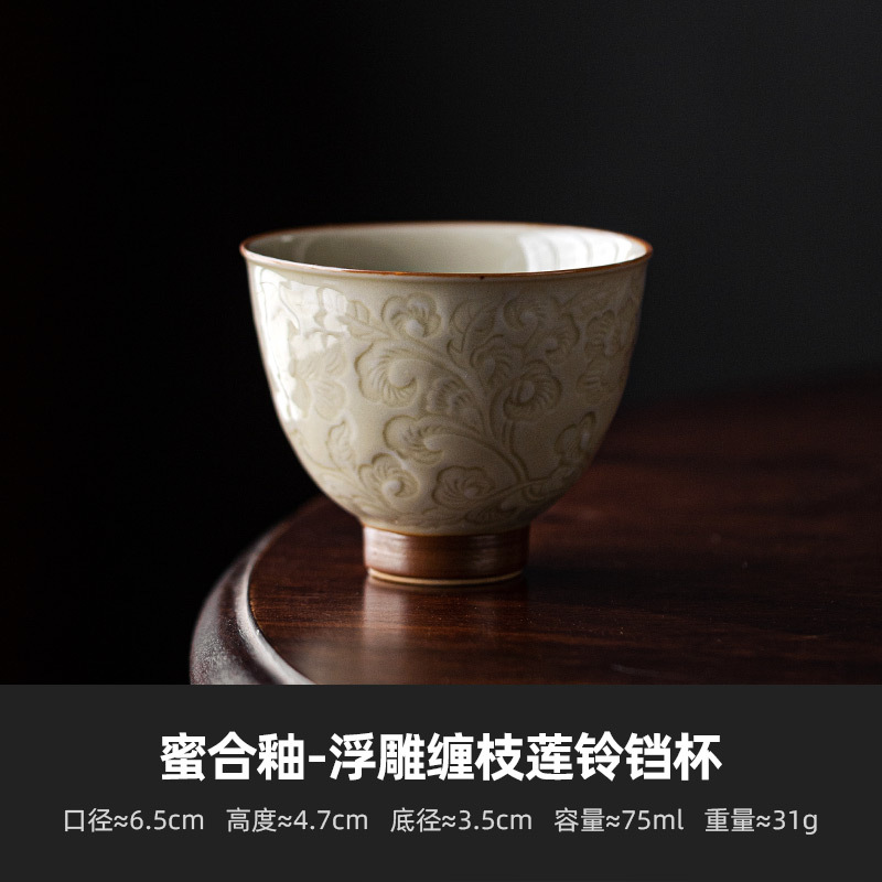 Honey combined glaze carved lotus flower tea cup ceramic tea bowl master cup single brewing tea set bell tasting cup