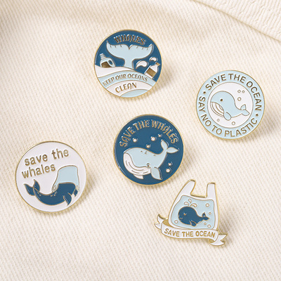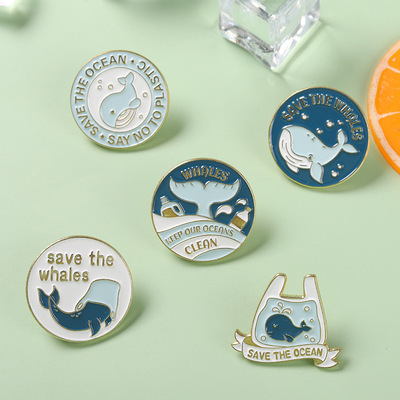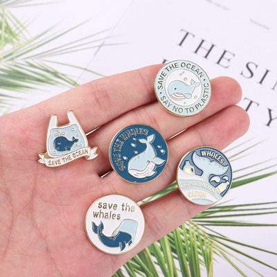 Sea animal badge blue whale geometric round brooch sweater collar pin waist pin metal badge accessories