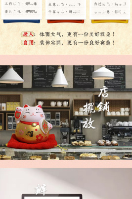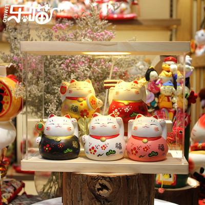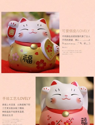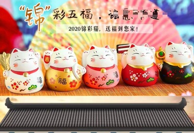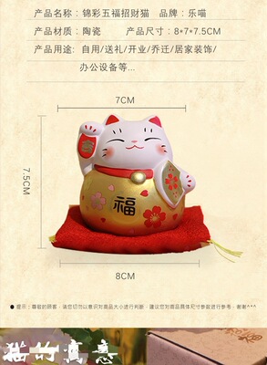 Lèmiāo Ceramic Art Craft Fortune Bringer Ornament Business Startup Home Shop Hand-painted Five Fortunes Fortune Cat
