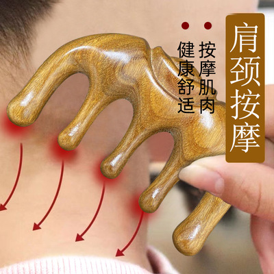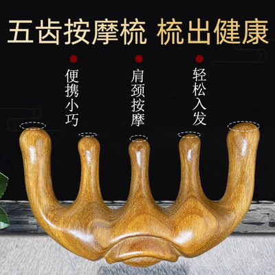 Five-tooth Gold Silk Sandalwood Massage Comb