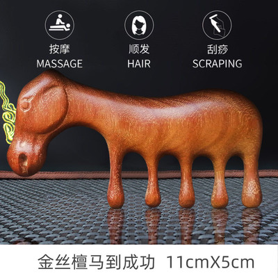 Bulk Green Sandalwood Carved Purple Sandalwood Gold Thread Sandalwood Wide-Tooth Wooden Comb Shoulder and Neck Head Massage Sandalwood Comb