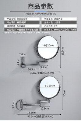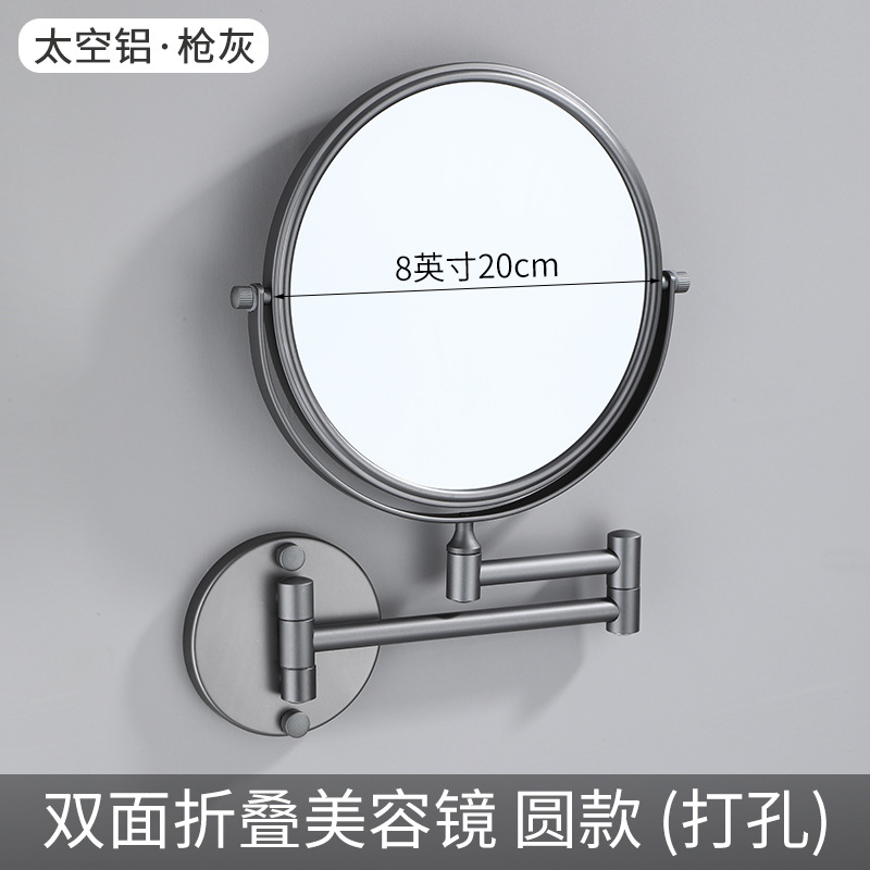 槍灰色太空鋁化妝鏡浴室壁掛摺疊式美容鏡子雙面伸縮放大鏡