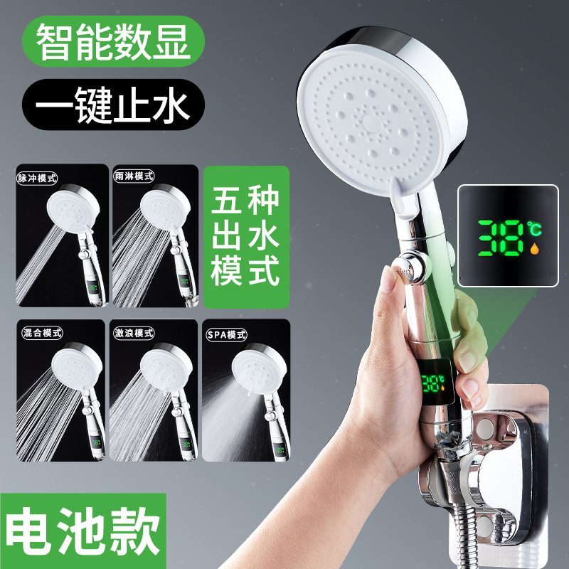 智能數顯五檔增壓花灑一鍵止水通用接口洗澡沐浴蓬蓬頭淋浴家用