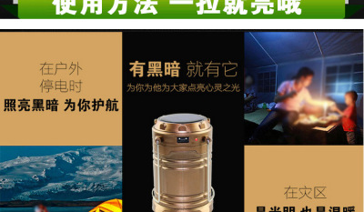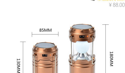 Solar camping light LED rechargeable camp tent light household emergency outdoor portable telescopic lantern