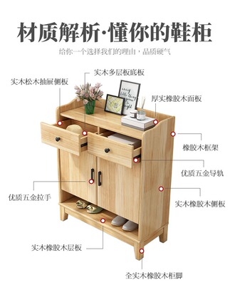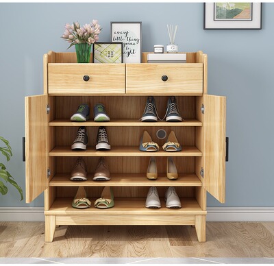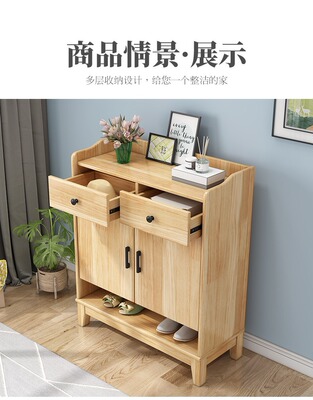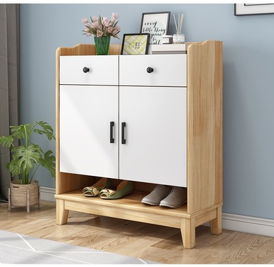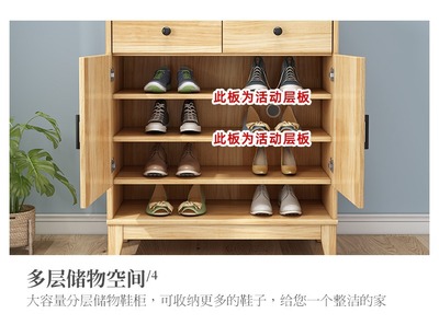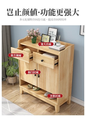 Nordic solid wood shoe cabinet modern minimalist living room large capacity storage cabinet household small apartment hall cabinet multi-layer storage