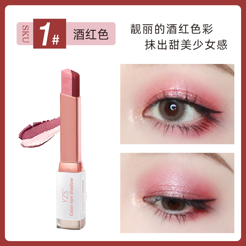 YZS velvet gradient two-color eye shadow stick eye modification lazy two-color eye shadow nude makeup is not easy to smudge