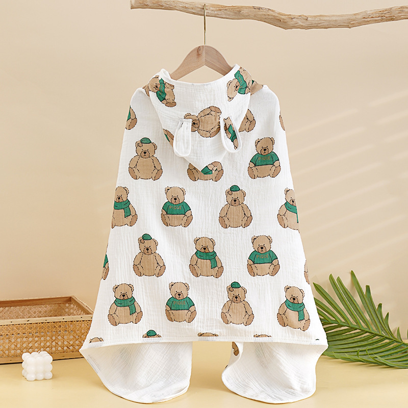 Children's Hooded Pure Cotton Gauze Towel Cape, Baby Cartoon Scarf Baby Cape, Wearable Towel Cape for Foreign Trade