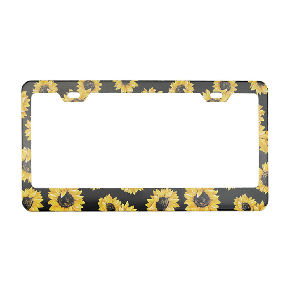 跨境新款美規復古向日葵鋁合金汽車牌照框美國萬聖節迷彩車牌架