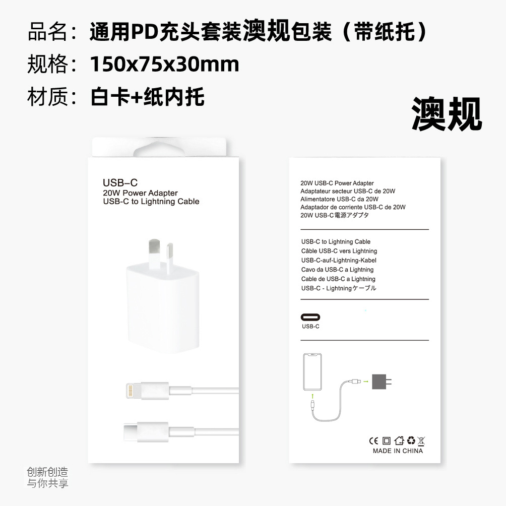 Specifications: Universal PD charger set Australian standard packaging (with paper tray)