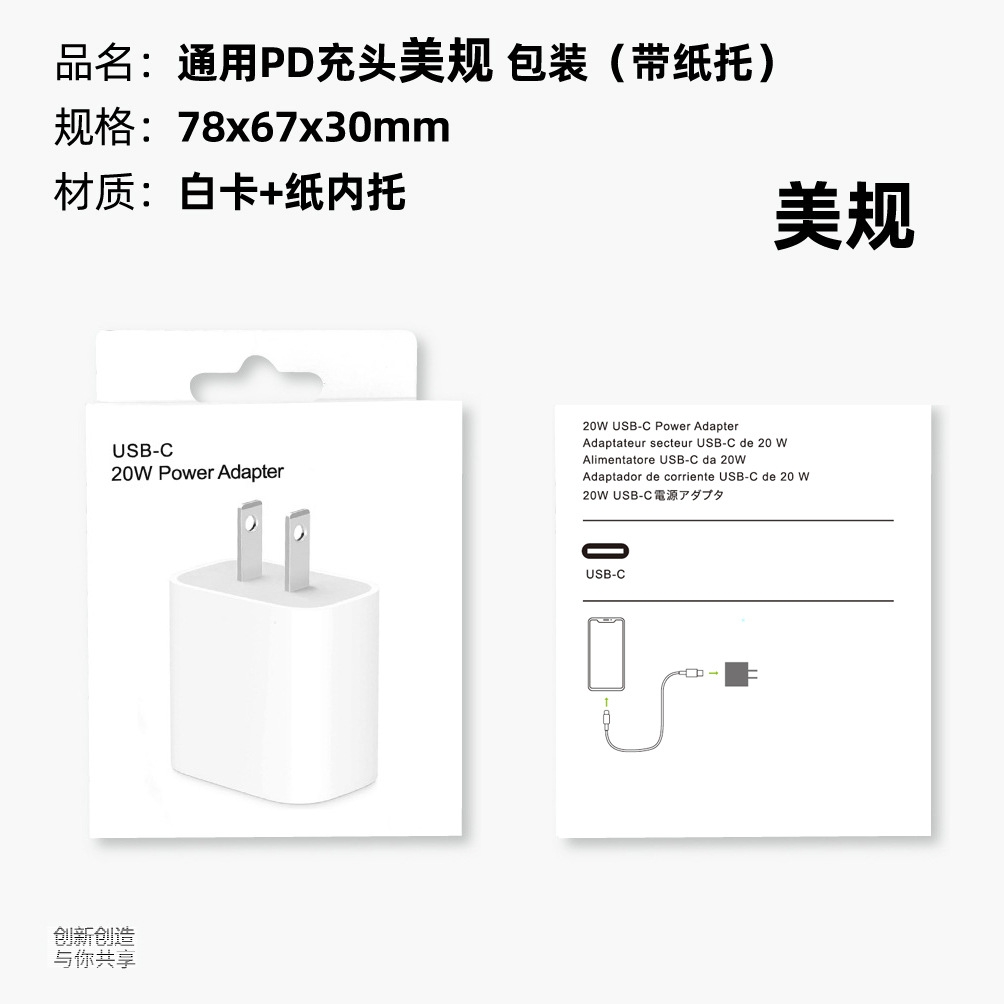 Specifications: Universal PD charger US standard packaging (with paper tray)