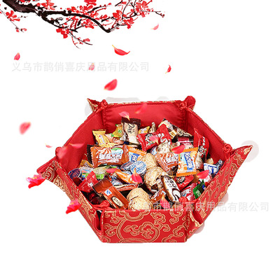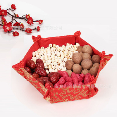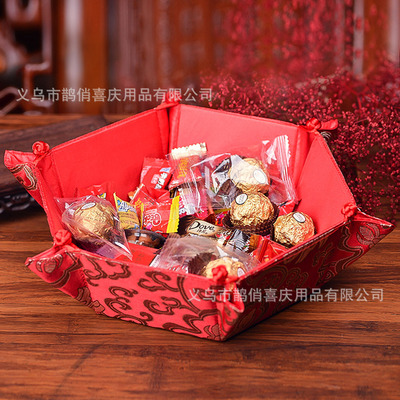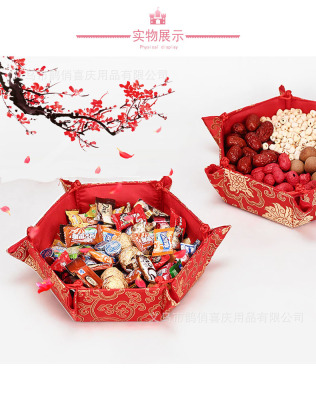 Marriage celebration supplies Chinese style dragon and phoenix plate wedding props red fortune red cloth fruit plate wedding reception candy box