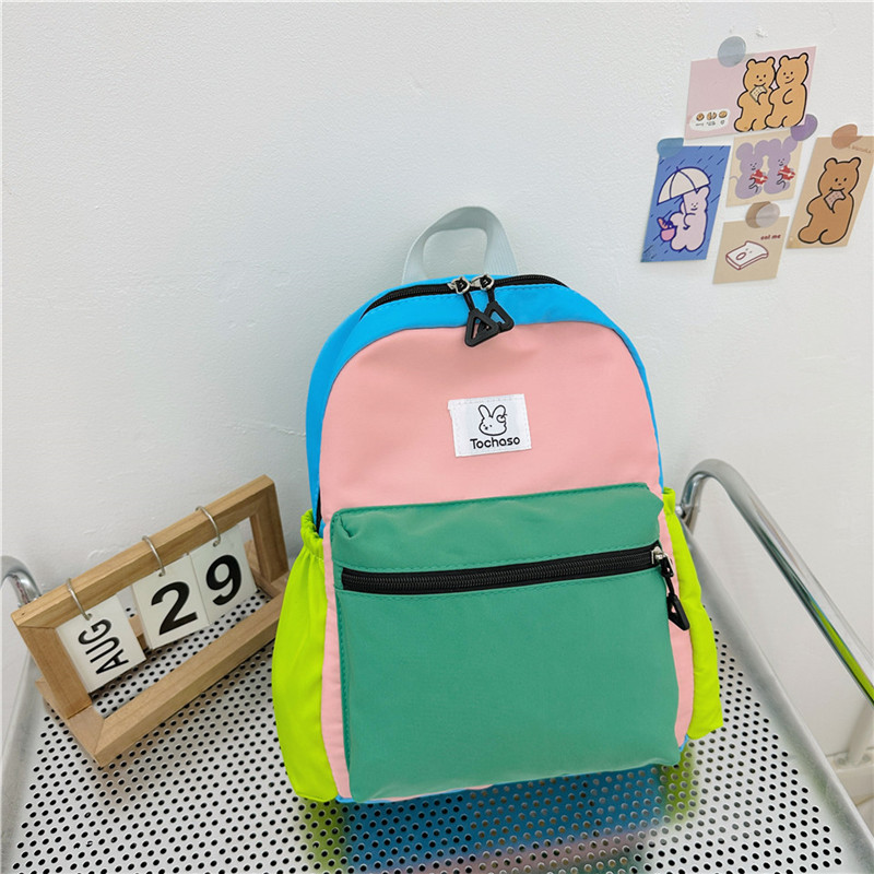 幼兒園輕便小書包2023新款兒童撞色雙肩包時尚寶寶可愛帆布小背包