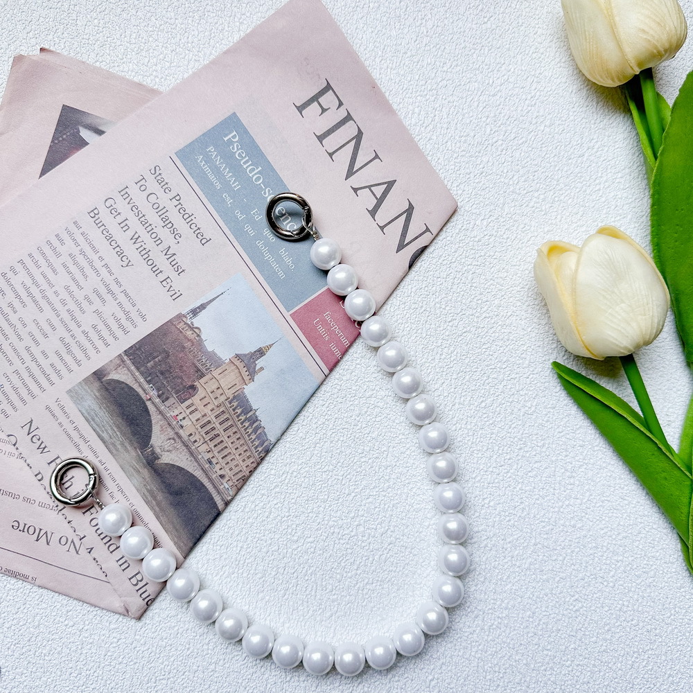 新款珍珠鏈條手提掛繩鏈條珍珠ins風小清新女款黑白鏈蝴蝶結輕奢