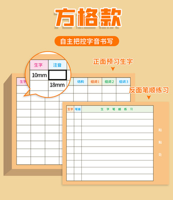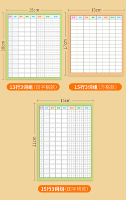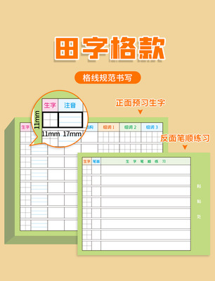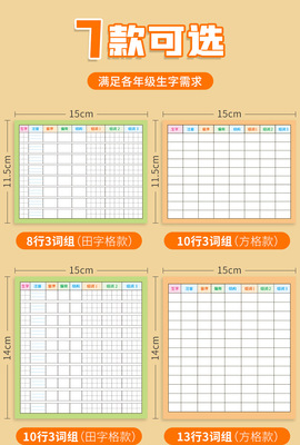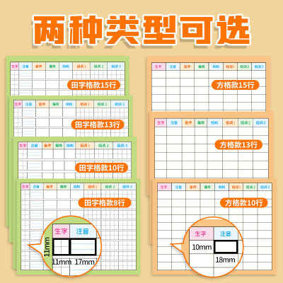 Eight 3x3 grid田字格 + ten 1x1 square方格, each with 50 pieces