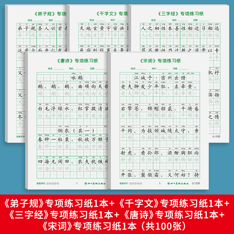 Specification: [The Three Character Classic + A Thousand Character Classic + Three Character Classic + Tang Poetry + Song Ci] Set of 5 books