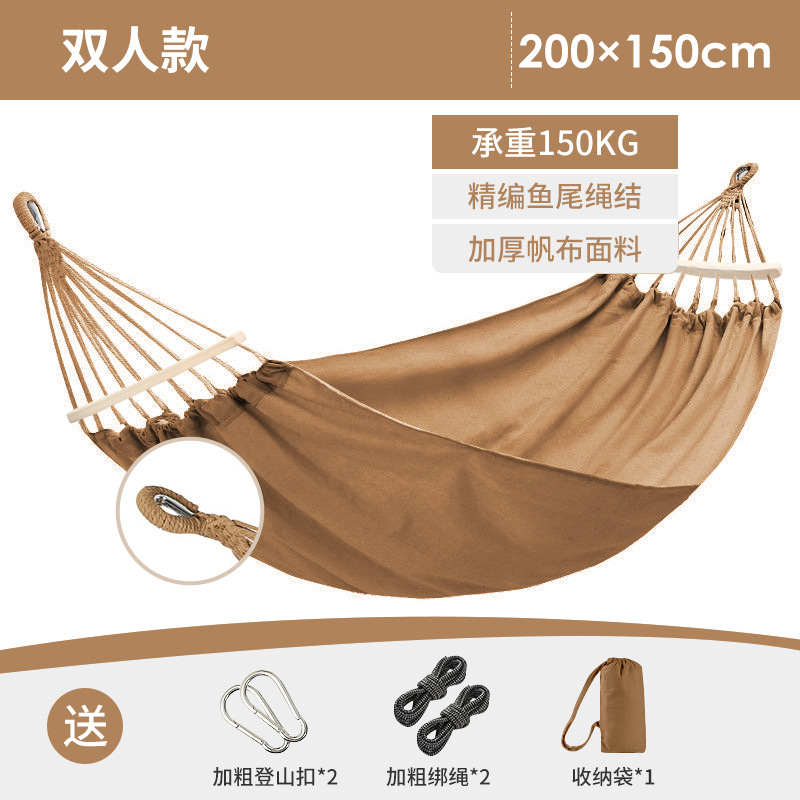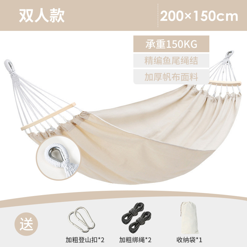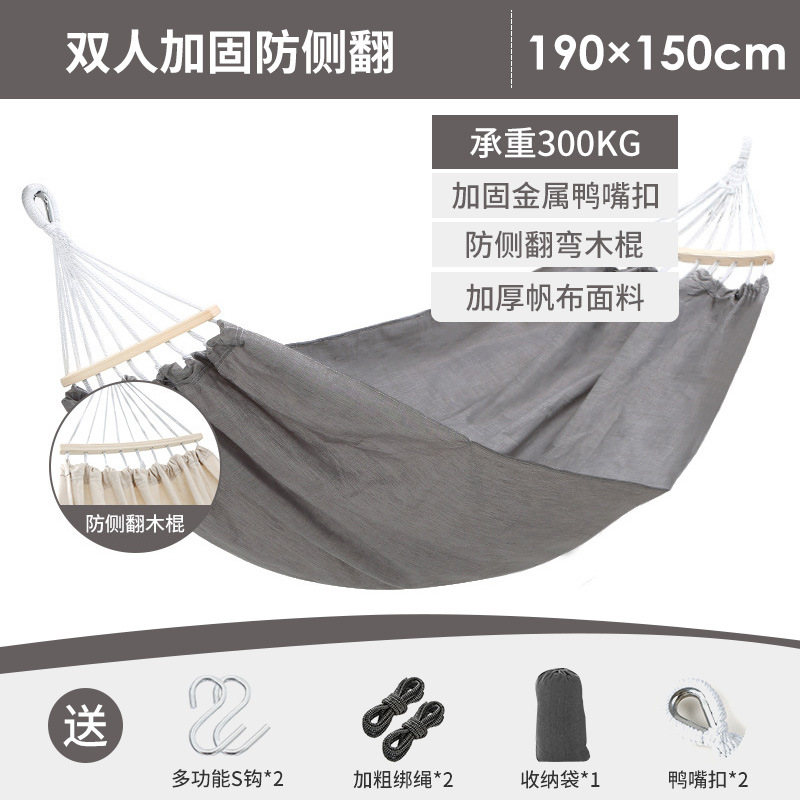 Anti-rollover single and double outdoor hammock wholesale, outdoor swing with wooden sticks, canvas bent stick hammock manufacturer