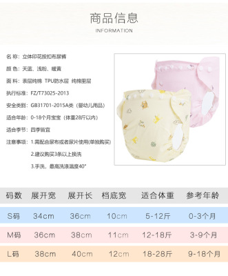 Baby diaper pants newborn children pure cotton waterproof baby breathable leak-proof washable snap button diaper pocket training pants