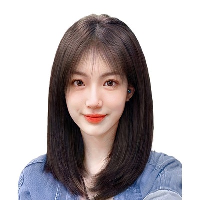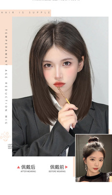 Front lace wig for women, fluffy natural human hair wig headgear, bob clavicle hair, medium and long hair full headgear