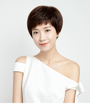 Full Hand Woven Female Full Head Suit Short Hair Natural Human Hair Wig for Ladies, Mothers, Real Human Hair Suit for Middle-Aged Women, Xuchang Wholesale