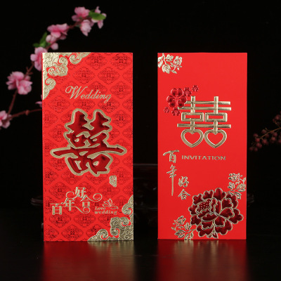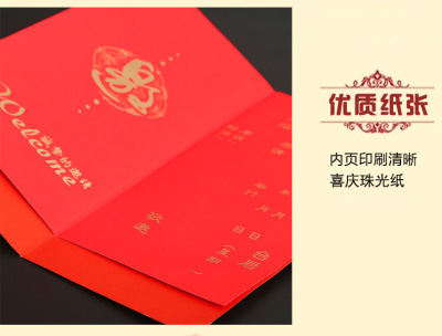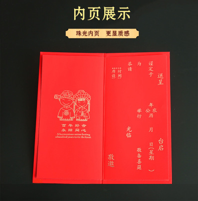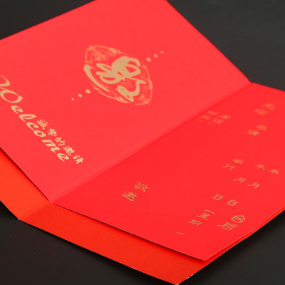 Wedding Invitation Wholesale Chinese Style Gold Foiled Marriage Banquet Elegant Simple Chinese Folded Invitation Card Soft Shell Wedding Invitation