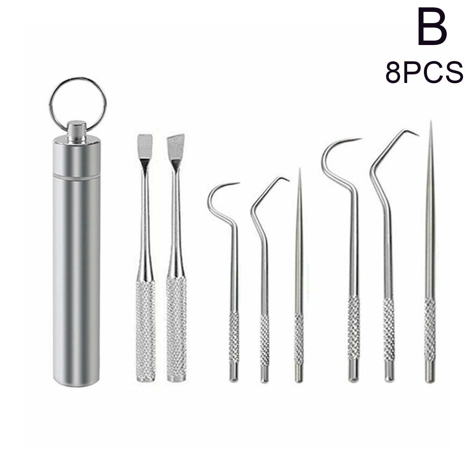 304 Metal Teeth Picking Tools Stainless Steel Toothpick Hook Pin Stick Portable Oral Teeth Cleaning Tool Set