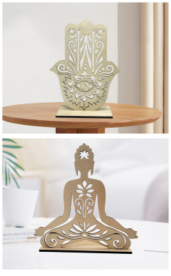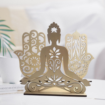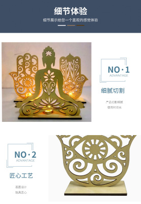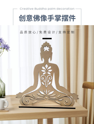 Cross-border wholesale wooden palm candlestick decorative craft creative temple Buddha hall craft decoration hollow Buddha statue decoration