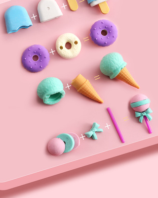 MOKA Children's Sweet Dessert Eraser Creative Learning Supplies Cartoon Cute Pen Eraser for Primary School Students Exclusive Prize