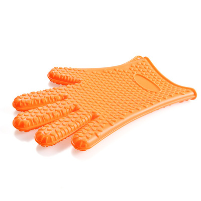 130g silicone five-finger gloves heart-shaped BBQ oven microwave oven retrieval silicone gloves wholesale