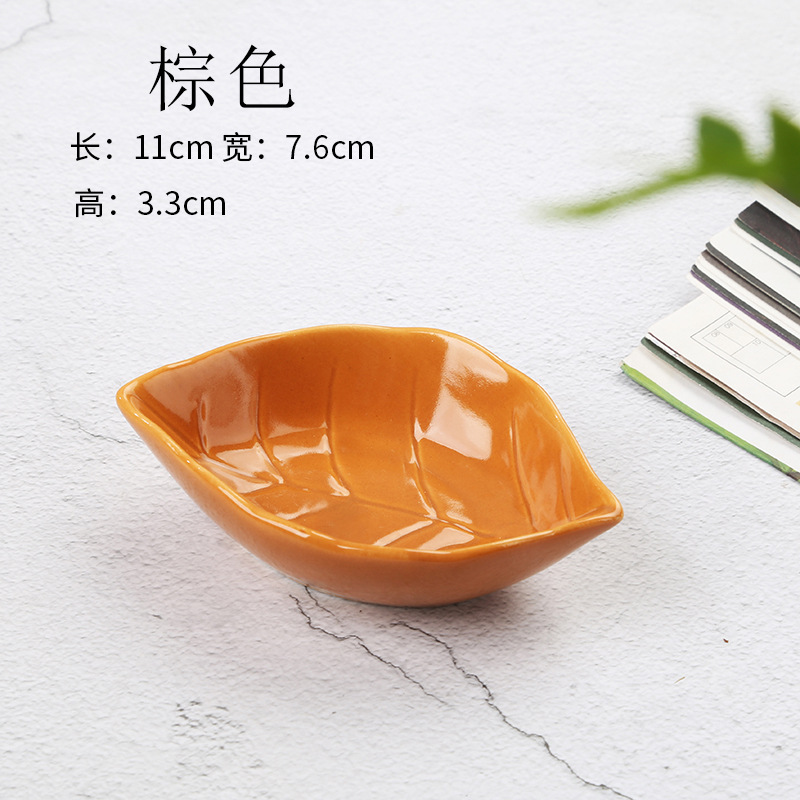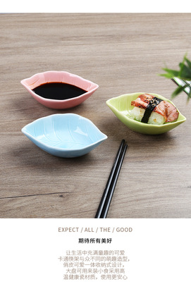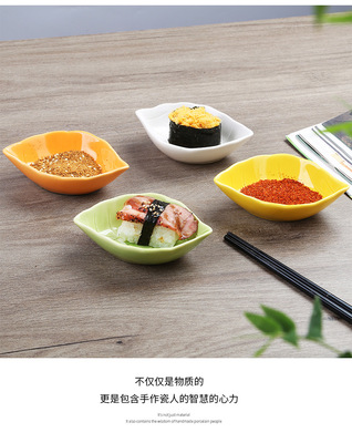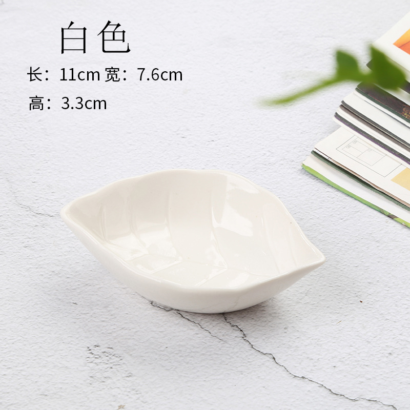 Cute Home Use Exquisite Small Ceramic Leaf Dipping Plate Mini Japanese Commercial Appetizer Plate Sushi Plate Tableware