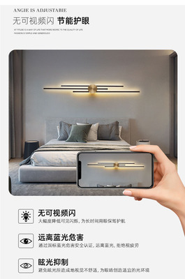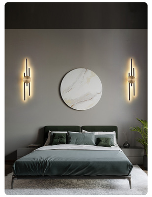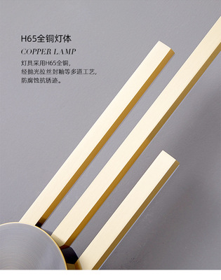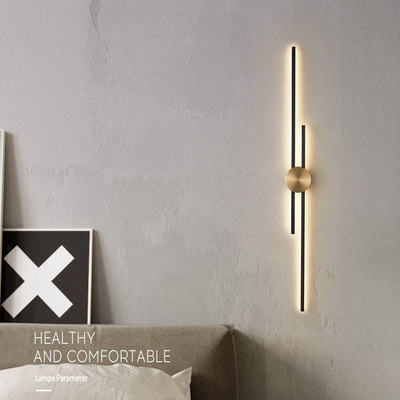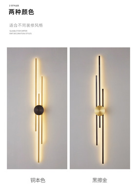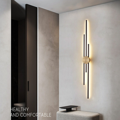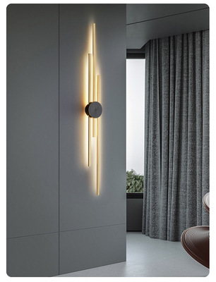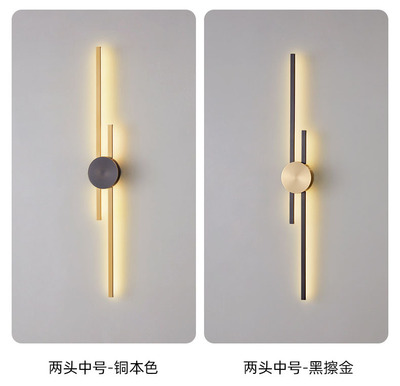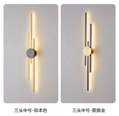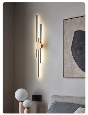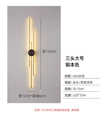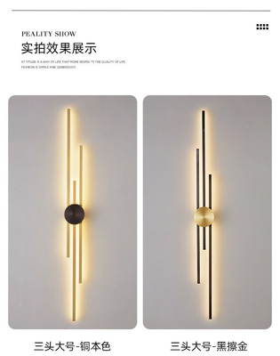 New copper wall lamp with Nordic light luxury design, long strip living room TV background wall decoration lamp, bedroom bedside hallway wall lamp